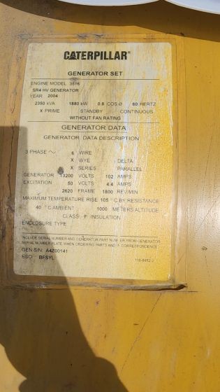 4000 KW Caterpillar #3516B, diesel generator set, 13200 Volts, switchgear, low hours Manufacturer: Caterpillar Model: 3516B kW: 4000 Volts: 13200 - 13200 Stock # MR02BR Price: $525,000 USD Request Info 6 For Sale by Green Industrial LLC Surplus Record Dealer Since 2004 Contact Seller Belgium, WI Michael Rick 262-47...> Show Seller's Phone Number 262-476-5045 Let the seller know you found their listing on Surplus Record! View More Green Industrial LLC 's ListingsDescriptionTHIS LISTING INCLUDES:2 x CAT 3516B Generator Sets1 x CAT Packaged E-House with HV Switchgear, Circuit Breakers, and CAT Control System with Paralleling2004 4 MW 2 x Caterpillar 3516B Diesel Generator 13200 Volts, PRIME POWER RATED Low HoursCONDITION: Running Take Outs. Ready for ServiceFOB: 281 Commerce St Belgium, WI 53004 USAManufacturer: CaterpillarMODEL: 2 x 2MW CAT 3516BEngine #1 Serial#: 1HZ03058Original Run Hours: 13,105 Total, 82 Hours Since Major Overhaul by ALBON CATDate of Mfg: 2004Engine #2 Serial#: 1HZ03061Original Run Hours: 15,114 Total, 1266 Hours Since Major Overhaul by ALBON CATDate of Mfg: 2004Size: 1880 KW PRIME / 2000KW StandbyVoltage: 13200 VoltsPhase: 3Hertz: 60Fuel Type: DieselBase Tank Included: NOEnclosed: NOMuffler Included: YESUnit Mounted Circuit Breaker: NO, SWITCHGEAR INCLUDED w E-HOUSEUnit Mounted Digital Controls: YESUnit Mounted Engine Driven Radiator: YESUnit Mounted Battery Charger: NOENGINE INFORMATION: 2 EnginesManufacturer: CaterpillarEngine Model: 3516BEngine Serial Number: 1HZ03058 & 1HZ03061Arrangement#: 1955874Perf Spec: 0K2968Engine Displacement: 69 LCylinders: V-16Aspiration: Turbo Charged, After CooledAdv Horse Power: 2628 HP @ 1800 RPMRPM: 1800Fuel: DieselYear of MFG: 2004GENERATOR END INFORMATION:Manufacturer: CaterpillarGenerator Model: SR4 HVGenerator Serial# 44Z00141Generator AR# 211-4892PRIME KW: 1880PRIME KVA: 2350Voltage: 13200Amps: 102Hertz: 60RPM: 1800Class F InsulationFrame: 26206 WIREWYEMax Temp Rise: 105 Degrees CDIMENSIONS & WEIGHT: EACH GENERATORWidth: 10'Length: 24'Height: 11'WEIGHT: 44,000 lbs.EHOUSE Dimensions & Weight:Length: 22' x 10' Wide x 10' TallWeight: 22,000 lbs.GIBUYS# MR02BR Request More Information from SellerInquire Further with Green Industrial LLC! "*" indicates required fieldsName*Company*Email* PhoneZip / Postal Code*QuestionMake an OfferRequests Send me a shipping quote I am interested in financingSend Copy Email me a confirmation of this inquiryBuyer Protection Use our partner Escrow.com to buy or sell equipment safelyBuyer Protection Send me info about buyer protectionThis field is hidden when viewing the formDealer Email Buyers Who Viewed This Listing Also Viewed …JUST ADDED! 1825 KW Caterpillar #3516B, Diesel Generator, Sound Attenuated 40' Containerized Power Module, 1800 RPM, 277/480 Volt, 1997Category: Diesel GeneratorsSeller: American Energy SolutionsLocation: Knoxville, TN Mfr: CaterpillarModel: 3516BYear: 1997A ed list of s, components and service work regarding this machine are listed below:, Sound Attenuated 40' Containerized Power Module, 40' Triple Axle Chassis with Title, UL142 Listed 1250G On-Board Fuel Tank, Caterpillar 3516B Prime Rated Diesel Generator Set, Jacket Water Heater, Battery Charger, Battery ...moreJUST ADDED! Caterpillar #3516B, Radiator, 2002Category: Industrial RadiatorsSeller: Crawford Power SystemsLocation: Houston, TX Mfr: CaterpillarModel: 3516BYear: 2002IEA Radiator Removed off of 3516B 1HZ Prefix Engine, DOM: 2002, Package Information (Or) Generator Set:Engine:Generator End.JUST ADDED! 2000 KW Caterpillar 3516B, Stationary Generator Set, Diesel, 1800 RPM, 13200V, 248 hours, 2000Category: Diesel GeneratorsSeller: Ohio Cat Power EquipmentLocation: Miami, FL Mfr: CaterpillarModel: 3516BYear: 2000Auto Start, Battery Charger, Frequency - 60 Hz, Generator Space Heater, Jacket Water Heater, Low Fuel Consumption Optimized, Rating - Prime. 1600 KW Caterpillar #3516B, Diesel Generator set, Prime, 400 Volts, 2024Category: Diesel GeneratorsSeller: Powersafe Energy ServicesLocation: Surrey, BC Mfr: CaterpillarModel: 3516BYear: 2024 2000 kW Caterpillar #3516B, Diesel Genset, 4-str, water cooled, ADEM A3 governer, 587 Hrs, skid mount, 2020Category: Diesel GeneratorsSeller: Aaron Equipment CoLocation: Schaumburg, IL Mfr: CaterpillarModel: 3516BYear: 2020used caterpillar diesel genset model 3516b, 2000 kw, 587 hours, 220 to 13800 volts. skid mounted.1800 rpm, 3/60/480v. caterpillar engine, rated 2145kw, model 3516b ta, v-16, 4-stroke water-cooled diesel. adem a3 governing system. sn 6hn01192. built 2000. 40320 max dry weight. our freight specialists can assist you ...moreShare × "*" indicates required fieldsYour Name*Your Email* Recipient's Email* Note to Recipient