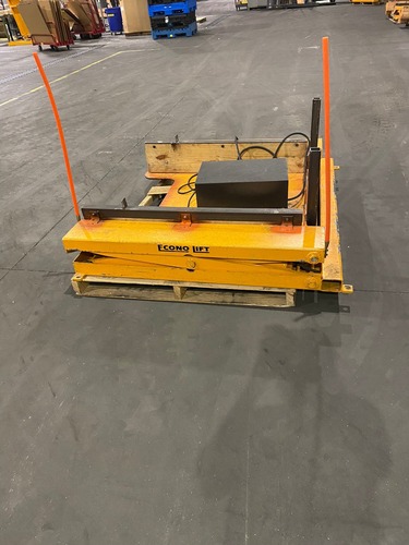 Econo Lift Scissor Lift Table, Model: 4SL48-40, -Capacity: 4,000 lbs., -Table Size: 72" x 96", -Low Height: 9", -Raised Height: 57", -Motor: 1 HP AC, -Voltage: 220 V, -Less Controls, -Shipping Weight: 1,100 lbs., -In Storage: Toledo, OH..