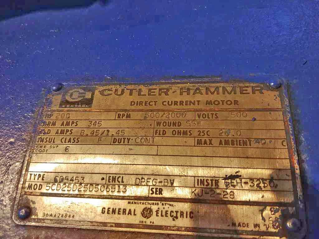 -200 HP DC Motor, 500/2000 RPM, 500 V w/Blower