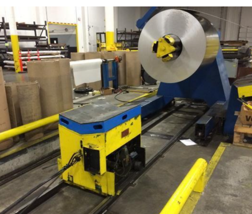 40000 lb. Cincinnati, uncoiler & coil car, 72" width, 72" outside dimensions, 18"-22" ID, left to right