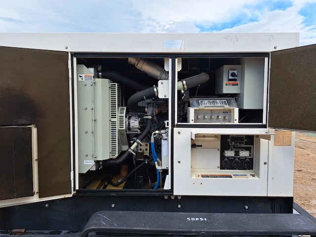 40kW standby 36kW prime rated - sound attenuated enclosure, dual axle trailer mounted with a pintle hitch, 79 gallon fuel capacity, T4f Isuzu engine, digital engine and analog generator control panel, electric starter, charging alternator, electronic governor, auto start/stop, 125A circuit breaker, power panel, safety ...more