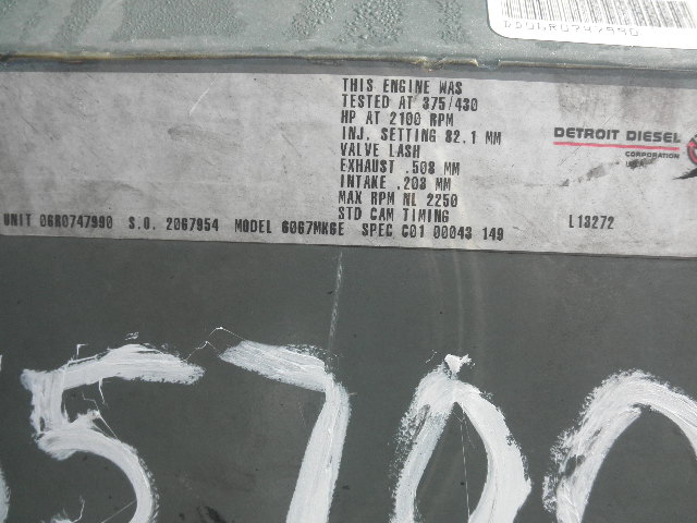 430 HP Detroit #Series-60, Diesel Engine Radiator, Inline 6-cylinder, 2250 RPM, (4) 6.3" stroke, 5.12" bore, 12.7 L displacement Manufacturer: Detroit Model: SERIES 60 HP: 430.00 Stock # 55700 Request a Quote 10 For Sale by Power Zone Equipment Surplus Record Dealer Since 2000 Contact Seller Center, CO Drew/ Jay 719-75...> Show Seller's Phone Number 719-752-2159 Let the seller know you found their listing on Surplus Record! View More Power Zone Equipment 's ListingsDescriptionBrand/Model:Detroit Series 60Description:Used Detroit Series 60 diesel engine radiator through flywheel with following features: • 430 HP • 2250 RPM • Inline 6 Cylinder, 4 stroke • 130.0 mm (5.12 in) Bore • 160.0 mm (6.3 in) Stroke • 12.7 L (778 in3) Displacement • Turbocharged (air to air aftercooled) Aspiration • CCW Rotation (from flywheel end) • SAE #1 Flywheel housing • Electric starting system • Weight 2,640 lbs (dry weight, engine only) • Dims (57”L x 34”W x 50” H)HP:430RPM:2250Ratio:17.2500 Request More Information from SellerGet Your Price from Power Zone Equipment! "*" indicates required fieldsName*Company*Email* PhoneZip / Postal Code*QuestionMake an OfferRequests Send me a shipping quote I am interested in financingSend Copy Email me a confirmation of this inquiryBuyer Protection Use our partner Escrow.com to buy or sell equipment safelyBuyer Protection Send me info about buyer protectionThis field is hidden when viewing the formDealer Email Buyers Who Viewed This Listing Also Viewed …Featured 665 HP Detroit #Series-60 DDEC IV, Tier 3 Power Unit, zero hoursCategory: Industrial Power UnitsSeller: Svenco SalesLocation: Shepherd, TX Mfr: DetroitModel: SERIES 60 380 HP Detroit #Series-60, 12.7 L remanufactured long blockCategory: Diesel EnginesSeller: Big Bear Engine CompanyLocation: Parker, CO Mfr: DetroitModel: SERIES 60Year: 2023We offer a variety of both, over the road truck and industrial replacement engines for the Detroit Diesel 60 Series. Our remanufactured Detroit Diesel 60 Series engines (11.1 L, 12.7 L and 14.0 L) come as a 3/4 long block and are not running trim condition. Our remanufacturing process strips the core down to the bare ...more 445 HP Detroit #Series-60, 14.0 L remanufactured long block - DDEC IVCategory: Diesel EnginesSeller: Big Bear Engine CompanyLocation: Parker, CO Mfr: DetroitModel: SERIES 60Year: 2023We offer a variety of both, over the road truck and industrial replacement engines for the Detroit Diesel 60 Series. Our remanufactured Detroit Diesel 60 Series engines (11.1 L, 12.7 L and 14.0 L) come as a 3/4 long block and are not running trim condition. Our remanufacturing process strips the core down to the bare ...more 430 HP Detroit #8V-92T, Diesel Engine, V-8 cylinder, 2-cycle, 2100 RPM, 5" stroke, 4.84" bore, 12.07 L displacementCategory: Diesel EnginesSeller: Power Zone EquipmentLocation: Center, CO Mfr: DetroitModel: 8V-92TBrand/Model: Detroit 8V-92T : Used Detroit 8V-92T diesel engine radiator through flywheel with following s: • 430 HP • 2100 RPM • 8-V Cylinder, 2 cycle • 123.0 mm (4.84 in) Bore • 127.0 mm (5.0 in) Stroke • 12.07 L (736 in3) Displacement • Turbocharged (air to air aftercooled) ...moreJUST ADDED! 422 HP Komatsu #SA6D140E-3, EngineCategory: Diesel EnginesSeller: Diesel SalesLocation: Chicago, IL Mfr: KomatsuModel: SA6D140E-3Complete Engine Exchange Plus $2500.00 Refundable Core Deposit With 100 Day Limited Parts Warranty.Share × "*" indicates required fieldsYour Name*Your Email* Recipient's Email* Note to Recipient