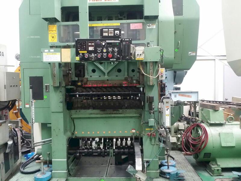 45 Ton, Asahi Seiki #STP-45, transfer press, 2.56" stroke, 13.78" Shut Height, 12 station die set, 3" pitch, 40-150 SPM, 1998