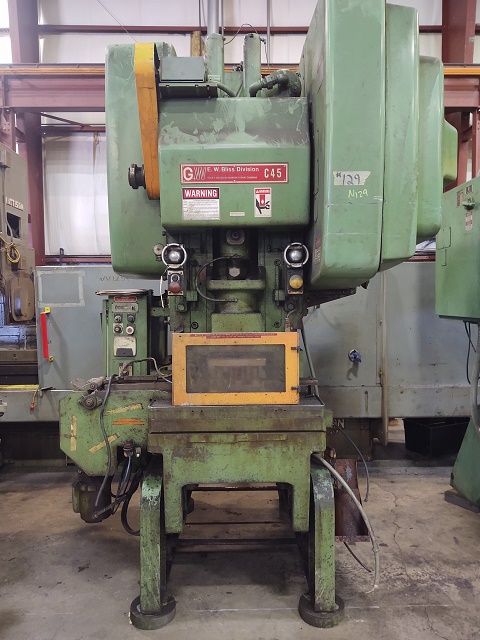 SERIAL. H66448/HP50158MODEL. C-45CAPACITY. 45 TONSTROKE OF SLIDE. 2-1/2"SLIDE ADJUSTMENT. 3"SHUT HEIGHT, SDAU. 12-1/2"AREA OF BED. 29-1/2" X 18"AREA OF SLIDE. 15" X 10-3/4"DEPTH OF THROAT. 10"WIDTH OF HOLE THROUGH BACK. 14"BOLSTER. 29-1/2" X 18" X 2-1/4"STEM HOLE. 2" DIAMETER X 6" DEEPSTROKES PER MINUTE. 90AIR CLUTCH ...more