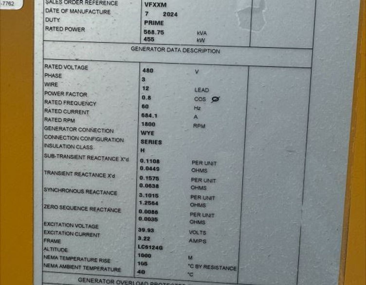 Stock#: IE750-135-CT Fuel: Diesel Year: 2023 Voltage: 480 Volts Hours: 2 Hours Phase: 1/3 Phase Make: CAT Model: 750 Serial: CAT00C18JT3402188 Hertz: 60 Hz Wires: 12 Lead Kilo Watts: 750 kW Mounted: Skid Mounted Lead: Reconnectable Length: 138" Width: 67" Height: 88" Weight: 10000 lbs Condition: New ...more