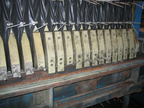 Used Perrin model 100-48 polypropylene filter press. 48 X 48 X 2 plates. 1200mm X (40) chambers. 100 psi operating pressure. 992 square foot filter area, 1488 square foot expanded. 54.8 cubic foot cake capacity, 82.2 cubic foot expanded. 1.5" thick cake. 4 eye, top center feed. 4" in, 2" out. With 30 HP Sullair air compressor; Airteck desiccant dryer; 24" diameter X 55" high 100 gallon surge tank rated 200 psi @ 650.