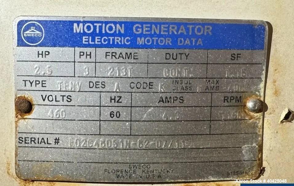 used- sweco model mx48s888tlwc 48" diameter screener, stainless steel construction. 48" inside diameter. double deck, triple separation. driven by 2.5 hp 3/60/460 volt, 1160 rpm motor. mounted on carbon steel base. serial# 98180-a05/11.