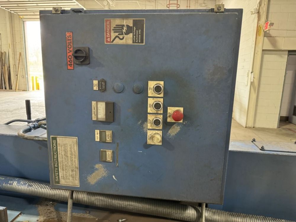 48" Wheelabrator, Fixed Table Shot Blast Machine, (2) 15 HP ezFit blast wheels, dust collector, reclaim system, 460 Volt, 2012