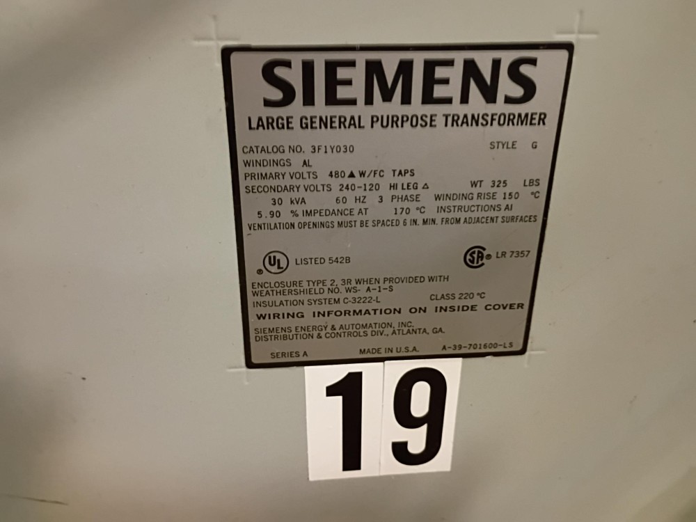 30 KVA 480 Primary, 240-120 Secondary, Siemens 3F1Y030, Electrical Transformer