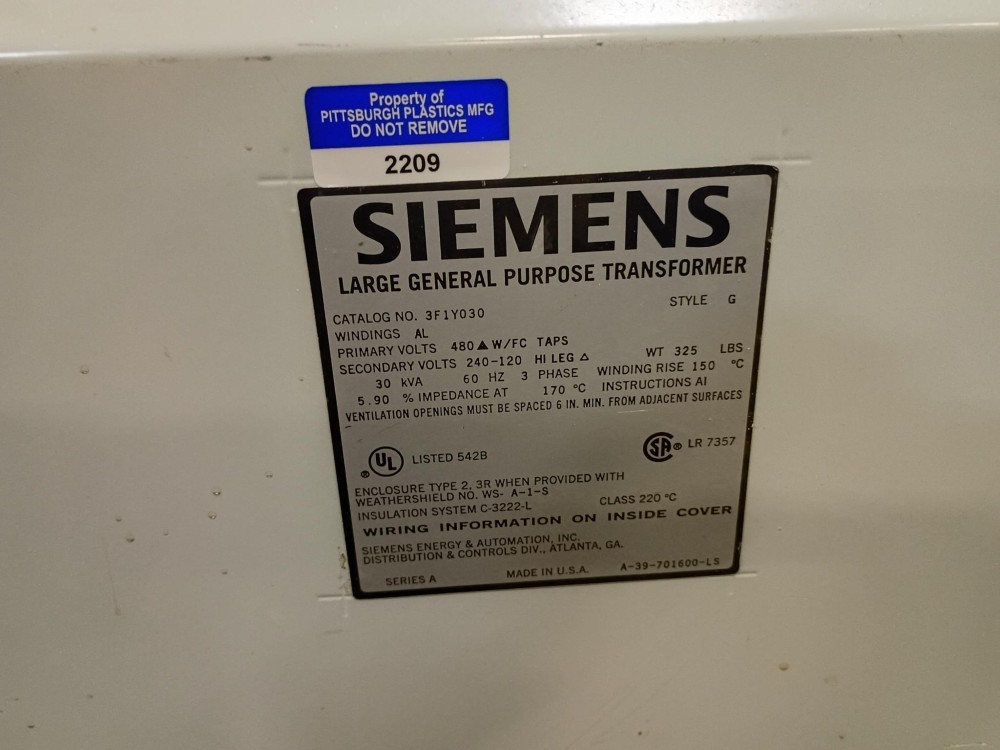 480V 240-120V 3Ph 30KVA Electrical Transformer- Siemens 3F1Y030 for sale!