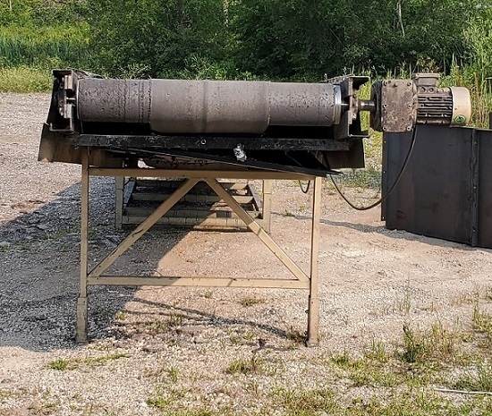 used- portec 90 degree belt conveyor, model lc-3848. belt approximate 49-1/2" wide. driven by a lesson hydro-mec 1hp, 3/60/208-230/460 volt, 1725 rpm gear motor. mounted on a frame. serial# 141184.