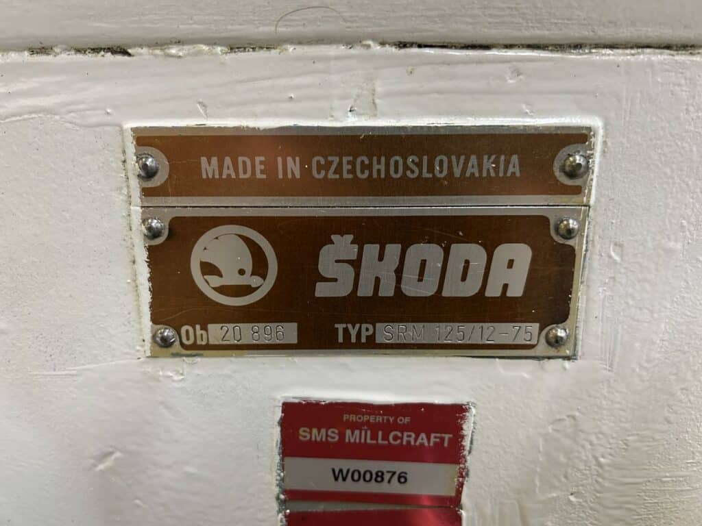General Info Stock #: 180250032 Location: Decatur, GA Brand: Skoda Model: SRM 125/12-75 Serial #: 20 896 Approx. Shipping Weight: 55,000 Lbs. Approx. Shipping Dimensions: 53' L x 8' W x 7' H Specifications Swing Over Bed: 49" Swing Over Carriage: 35" Distance Between Centers(Approximate): 480" Maximum Torque of Face plate: 22,780 ft.-lbs. Maximum Weight of Workpiece Between Centers(Without Rests): 30,850 Lbs. Height of Bed: 24-1/2" Width of Bed: 43-1/4" Spindle Speeds 1st Range: 1.8 to 90 1.4 to 71 RPM Spindle Speeds 2nd Range: 8 to 400 6,3 to 315 RPM Metric Threads(28): 1 to 50 Module Threads(28): 2 to 20 Whitworth Threads: 24 to 1/2 TPI Main Motor: 50 HP Motor For Rapid Traverse of Carriage: 1.75 HP Motor For Travel of Tailstock: 1.5 HP Overall Bed Length: 542" Electrical: 480V/3PH Equipped With (3) Steady Rest, Powered Tailstock, Powered Carriage Feed, Manuals/documentation Additional Info The Skoda Engine Lathe can be demoed upon request.