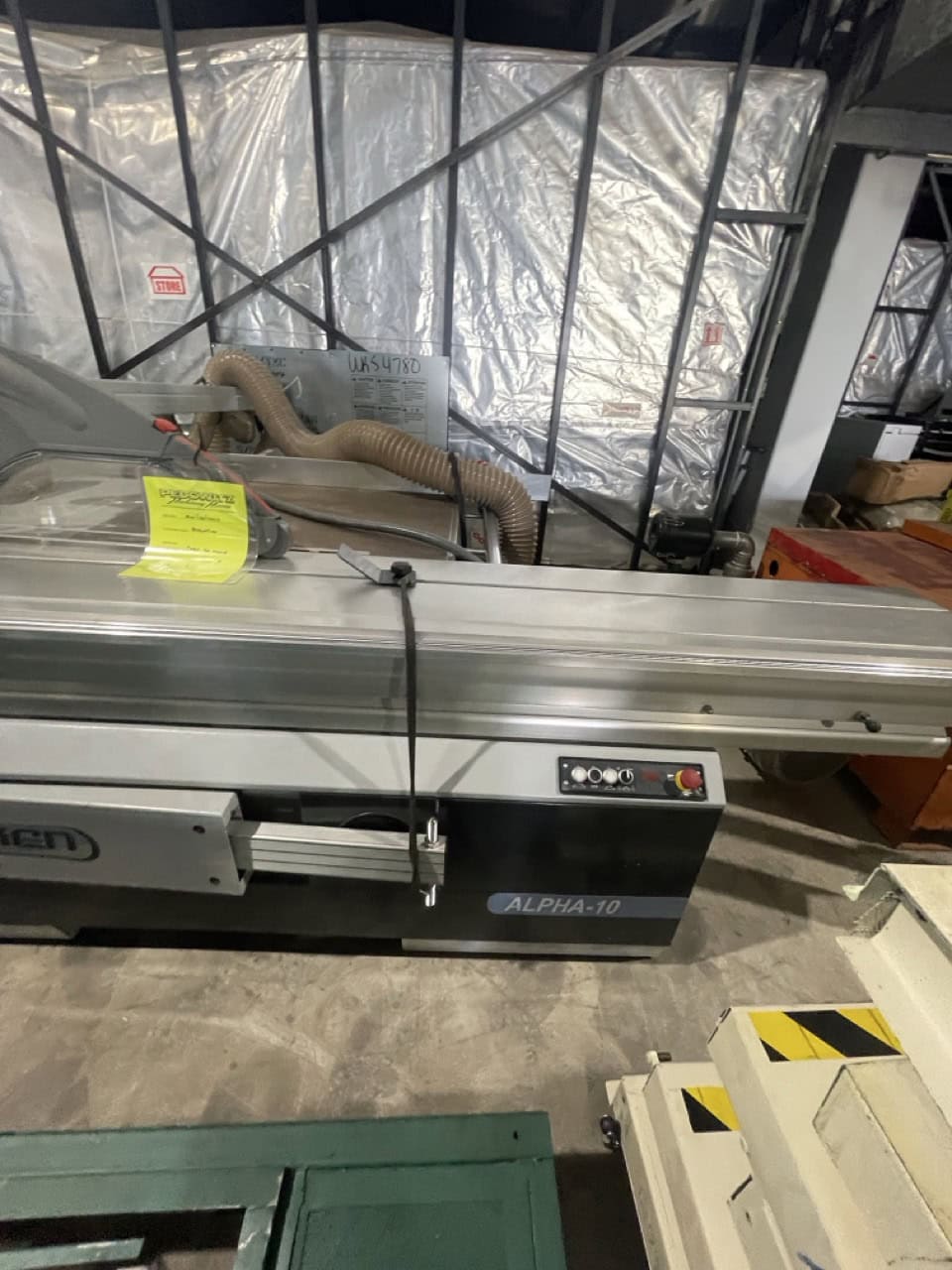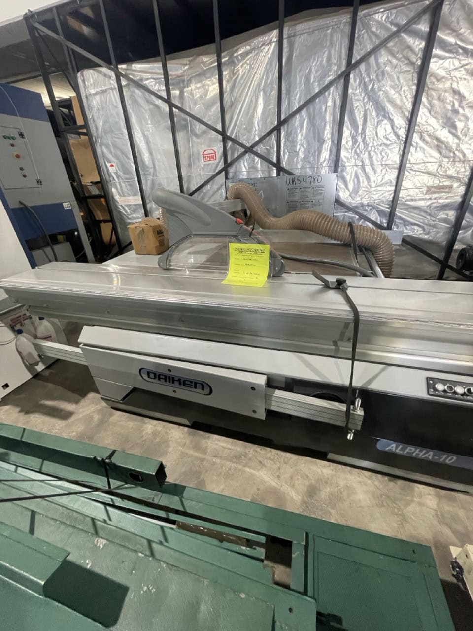 5.1" x 125" Daiken #Alpha-10, Sliding Table Saw, 7.5 HP, 220 V., 5k RPM, 2023 Manufacturer: Daiken Model: ALPHA-10 Year: 2023 Description: sliding table saw Stock # 324942 Price: $7,999 USD Request Info 8 For Sale by Revelation Machinery Surplus Record Dealer Since 2017 Contact Seller Chicago, IL Tim Wheeler 816-33...> Show Seller's Phone Number 816-330-2138 Let the seller know you found their listing on Surplus Record! View More Revelation Machinery 's ListingsDescription Make: DaikenModel: Alpha 10Year: 2023Machine Location: Florida– 7.5 HP 220 Volt Three Phase Main Motor– 3/4 HP Scoring Motor– 3000 / 4000 / 5000 RPM Main Blade (3 Speeds Depending on Blade Size)– 8000 RPM Scoring Blade– 130mm Cut (90) 90mm Cut (45)– 1250mm Max Rip Capacity– Heavy Duty 3200mm x 418mm Aluminum Sliding Table– Floor Space 145” wide x 140” long x 34.5” table height– Shop Space required to Operate saw 264” x 228” x 58”– Shipping Dimensions (Saw 90.5” x 47” x 36”) (Table 142” x 20” x 11”)– 1914 Pounds Shipping Weight (1672 Pounds Net Weight) Request More Information from SellerInquire Further with Revelation Machinery! "*" indicates required fieldsName*Company*Email* PhoneZip / Postal Code*QuestionMake an OfferRequests Send me a shipping quote I am interested in financingSend Copy Email me a confirmation of this inquiryBuyer Protection Use our partner Escrow.com to buy or sell equipment safelyBuyer Protection Send me info about buyer protectionThis field is hidden when viewing the formDealer Email Buyers Who Viewed This Listing Also Viewed …JUST ADDED! Cutler-Hammer #K3-Winner/05, Table Saw, 64" x 79" capacity, 3 kW, 230 V, 2014Category: Table SawsSeller: HGR24Location: Euclid, OH Mfr: Cutler-HammerModel: K3 WINNER/05Year: 2014Inventory No. 0126-105-0002 Manufacturer Hammer Model No. K3 WINNER/05 Name Table Saw Arrival Date 02-04-2026 Dimensions L x W x H (inches) Unavailable Capacity 64" X 79" Electrical 1/60/230 Weight (lb.) 832 Category Fabrication Condition Used Available Quantity 1 Serial No. 51.1.035.14 Make Year 2014 Item 3.0 Kw ...more Dayton #4TJ88B, Contractors Table Saw, 10" blade, 3-1/8" max cut, 1.33 HP, 120 V., w/ Tsquare & blade guard,Category: Table SawsSeller: Norman Machine Tool LtdLocation: Baltimore, MD Mfr: DaytonModel: 4TJ88BDayton 10″ Contractors Table Saw, 4TJ88B, Inventory # 9873, Model: 4TJ88B, Depth of Cut @ 90°: 3 1/8″, Depth of Cut @ 45°: 2 1/8″, Table Dimensions with Extension: 37 1/2″ x 20 1/2″, Overall Height with Stand: 34″, Motor: 1 1/3 HP / 120v / 1ph, Equipment Included:, Blade ...more Casolin #Astra-DGT, Sliding Table Saw, 10"-16" Blade, 128" Table, 1.18" Bore, 8 HP, 5000 RPMCategory: Table SawsSeller: RT MachineLocation: Hughesville, PA Mfr: CasolinModel: ASTRA-DGTCasolin Model Astra DGT Sliding Table Saw Sliding Table 128" (3200mm) Saw Motor - 8Hp (6kW) Saw Blade Size (Min/Max) 10"-16" (250/400mm) Saw Blade Bore - 30mm Saw Blade Speed (Variable) 3200,4200,5000 RPM Scoring Motor - 3/4HP (0.6kW) Serial No. 1662006 Scoring Blade Bore - 20mm Scoring Blade Speed - 9000RPM ...more Dayton #4TJ89C, Table Saw, 3 HP, 10" bladeCategory: Table SawsSeller: Wheeler Machinery SalesLocation: Pomona, CA Mfr: DaytonModel: 4TJ89CDAYTON 4TJ89C Table Saw #7964 #1, Max. Cut Width Left of Blade: 10 in, Max. Cut Width Right of Blade: 4-3/16 ft, Max. Cutting Depth @ 0 Deg.: 3 in, Max. Cutting Depth @ 45 Deg.: 2-1/8 in, Bevel Angle - Maximum: 45, Bevel Angle - Minimum: 0, Bevel Tilt Direction: Right, Blade Dia.: 10 in, Blade Setback from Table ...more Casadei #KS/15, Sliding Table Saw w/ TigerStop Control, 8HP, 44" x 26.5" table, S/N 98-13-018, 1998Category: Table SawsSeller: Lenmark IndustriesLocation: Langley, BC Mfr: CasadeiModel: KS/15Year: 1998SKU: 101854, Model: KS/15, Year: 1998, Condition: Used, S/N: 98-13-018, Horsepower: 8 hp, Table Size: 44" x 26.5", Voltage: 220 volts, Phase: 3-phase, Saw Type: Sliding Saw, CNC: Yes, Made In: ITALY, Dimensions: 34.00 (H) x 56.00 (W) x 112.00 (L) inches, Additional :, Main Motor, Power: 4.8 kW, Voltage: ...moreShare × "*" indicates required fieldsYour Name*Your Email* Recipient's Email* Note to Recipient