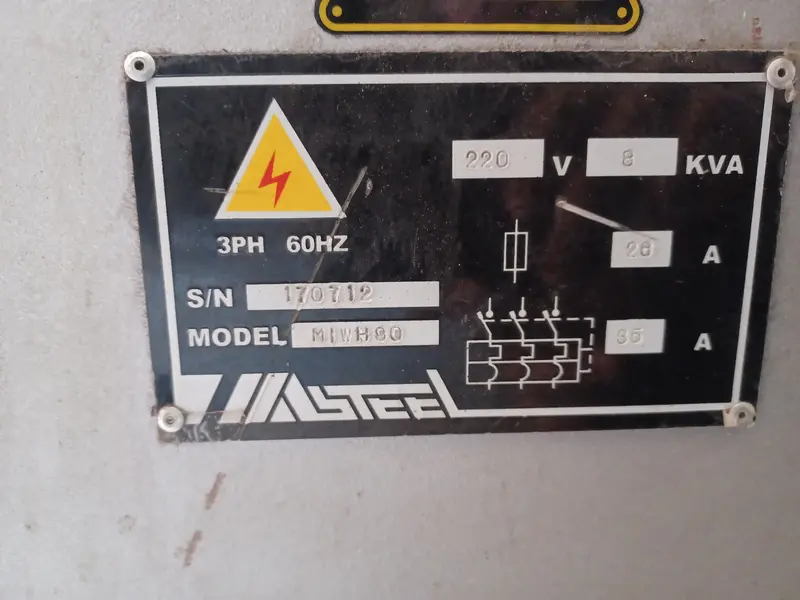 Used MAsteel MIWH-80. This pre-owned Ironworker is in great working condition and can be securely delivered to your facility floor. If you have any technical questions about this MAsteel Ironworker we can review machine specifications. To request a quote, inquire about rigging and trucking or to schedule an inspection, contact us today. Punch Tonnage: 90 Ton Max Punch Capacity: 1-1/4 x 3/4" Throat Depth: 14 Angle Bar Shearing: @ 90 5.5 x 5.5 x 1/2 Round Bar Shear: 2 Square Bar Shear: 2 Notching: 2-1/4 x 3-7/8 x 1/2" Main Motor: 10 HP Weight: 4200 lbs. Dimensions: (L x W x H) 78 x 32 x 76