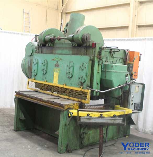 Make: Cincinnati, Serial # 47284, Model: 4SE20-FSU-3, Material Width: 20', Material Thickness: 1/2", Blade Length: 20.5', Throat Depth: 18", Number Of Holdowns: 23, Back Gauge Range: 60", Main Motor: 40 H.P., Max Speed: 28 spm, 60" Power Back Gauge, Electric Foot Switch.