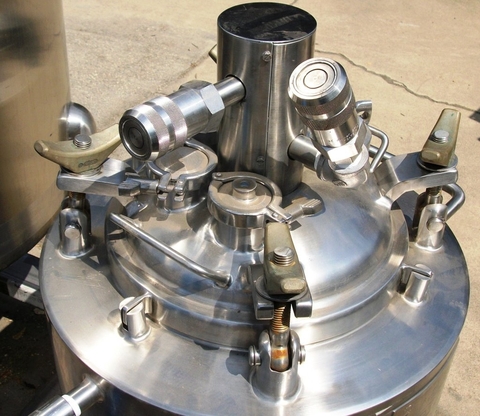Used Pfaudler approximately 5 gallon stainless steel vessel. 12" diameter X 12" straight height. With clamped dished top and welded dished bottom. Rated full vacuum internal and 75 psi jacket. Threaded bottom outlet. S/N E 45607., PFAUDLER 5 GALLON, Capacity. 5 gal, National Board No. E 45607, Internal Pressure. 0 ...more