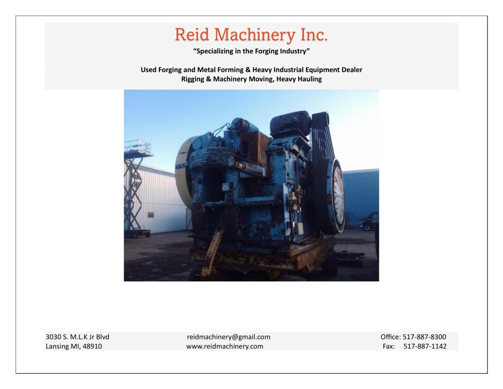 | `1100 Ton National 5” / 127 mm Upsetter Press Asset: L003 | ||||||||||