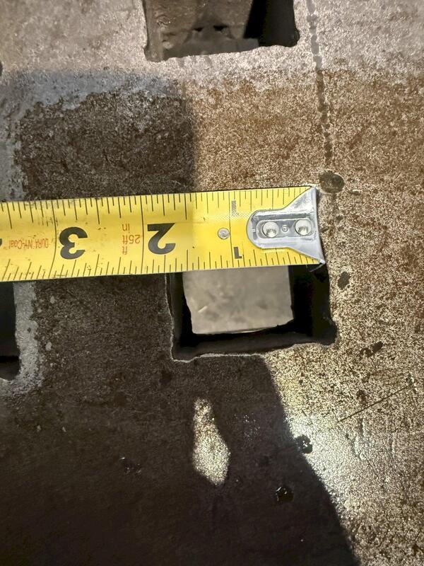 WIDTH OF PLATE. 60", LENGTH OF PLATE. 60", THICKNESS OF PLATE. 5-1/2", HOLE SIZE.1-3/4" X 1-3/4", STAND. YES.