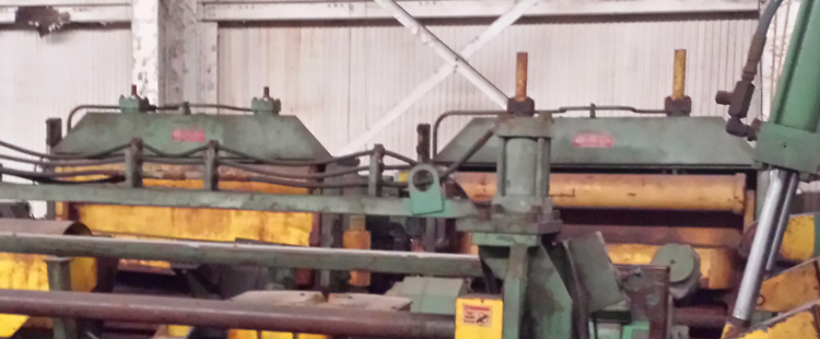 Width 84 inches, Thickness.5 inches, Power 50 horsepower, Year 1997, Machine No. 80021-9040-000, Capacity: At 84 Wide, 125 Yield (High Strength Material), Water Cooled Clutch / Brake, 50 HP Motor / 1800 RPM, Bow Tie Blades, 88 Blade Face, 6 Hold Downs, 44" Diameter flywheel, Single Reduction Reducer : 2.75:1 ...more