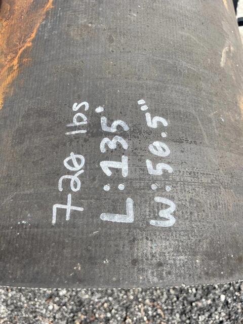 used- portec 90 degree belt conveyor, model lc-3848. belt approximate 49-1/2" wide. driven by a lesson hydro-mec 1hp, 3/60/208-230/460 volt, 1725 rpm gear motor. mounted on a frame. serial# 141184.