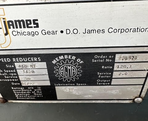 50 HP @ 1170 RPM, Falk #2100Y2-L, 38.08:1 ratio, 30 RPM output, 1.73 Svc Factor