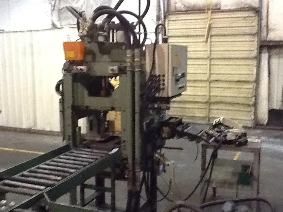 MODEL # PC-50-18-8TM. SERIAL #6406. CLAMP CYLINDER IS 7" BORE WITH A MAX STROKE OF 12". SET UP WITH FOUR DAYLIGHT OPENINGS OF 3" EACH. TOTAL OF 8 ELECTRICALLY HEATED AND WATER COOLED PLATENS. FULLY GUIDED ON 2" DIAMETER POSTS. OPERATOR HEIGHT IS 36.5" (33" WITHOUT LOWER PLATEN). IF ALL THE PLATENS WERE REMOVED THE ...more