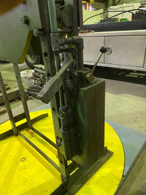 SERIAL. 13963, MODEL. 50 T, CAPACITY. 50 TONS, DISTANCE BETWEEN UPRIGHTS. 42", AREA OF BED OF CLOSED. 5" X 45", AREA OF BED OPEN. 30" X 45", BED ADJUSTMENT. 0" TO 25", DISTANCE BETWEEN SIDE FRAMES. 9-3/8", RAM TRAVEL (STROKE). 16", BED ADJUSTMENT. 7" CENTER, OPEN HEIGHT. 45", CLOSED HEIGHT. 0", CYLINDER DIAMETER. 2" ...more