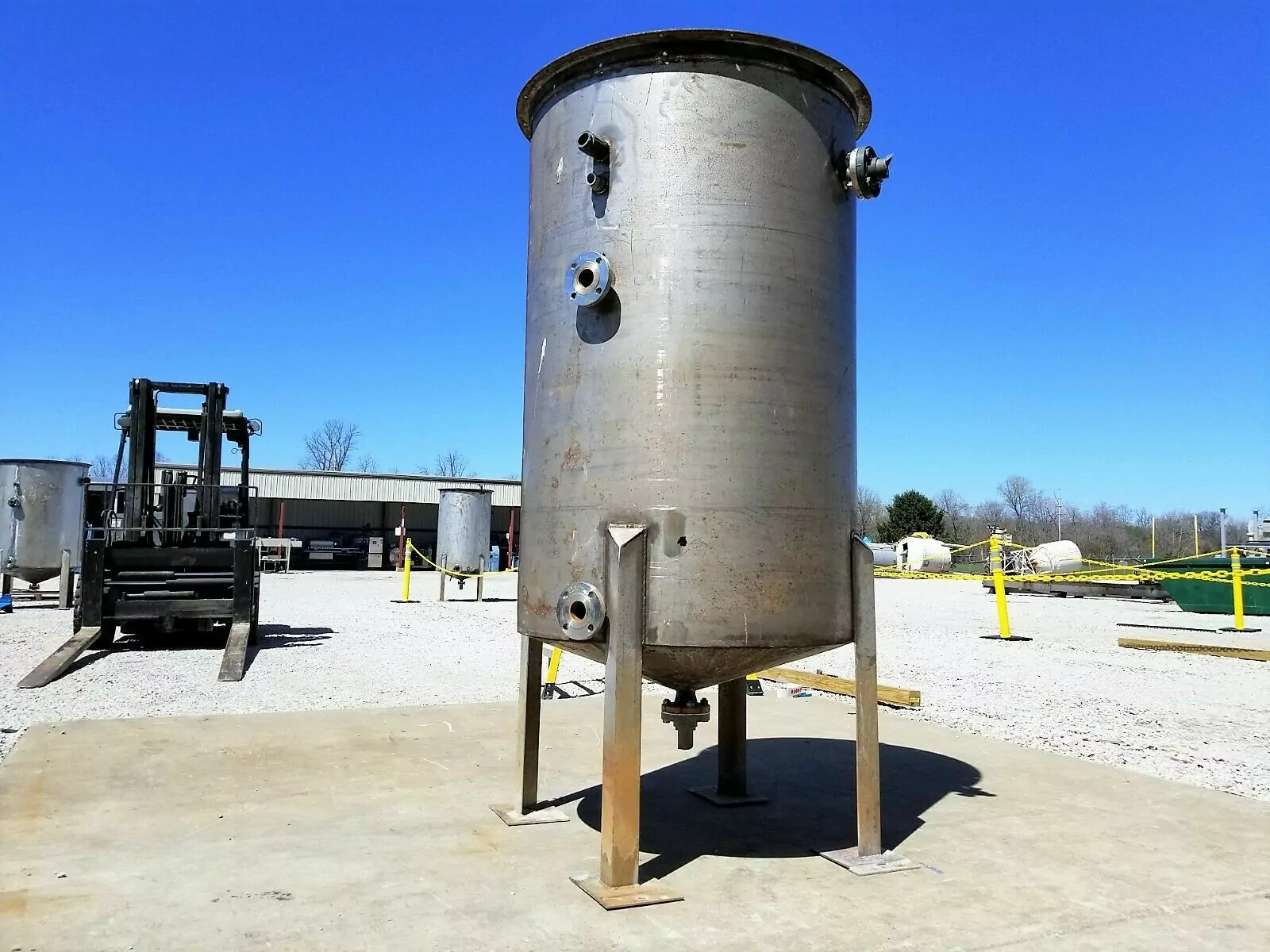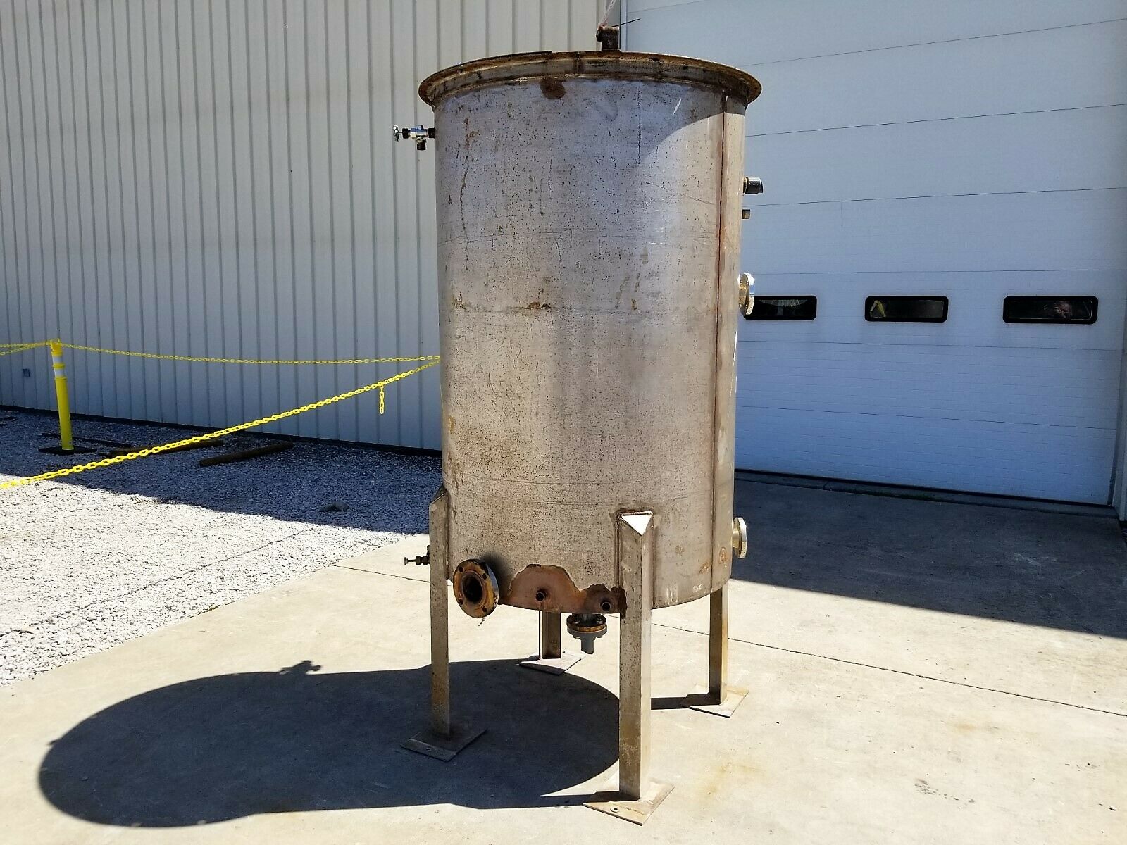 500 gallon Stainless steel tank with internal coil42" dia. x 66" straight side, open top Gallons/Liters: 500.0 Stock # 3136 Price: $4,750 USD Request Info 10 For Sale by Cooper Industries Llc Surplus Record Dealer Since 2024 Contact Seller Millwood, WV Sheldon Sharp 304-31...> Show Seller's Phone Number 304-316-6655 Let the seller know you found their listing on Surplus Record! View More Cooper Industries Llc 's ListingsDescriptionDescriptionITEM 15705: Used 500 GALLON STAINLESS STEEL TANK withInternal Coil42″diameter x 66″ straight side. sloping bottom to the center to give full drainage. 2″ diameter pipe coil inside of tank forheating or cooling. Tank is open topwith loose hinged covers and a bridge for supporting portable mixer (notincluded). Tank has a 2″ flangedcenter drain and clearance under the outlet flange is 14.5″. Tank has three 2″ flanged outlets onside, one 3″ flanged outlet; 1-1/2″ npt; one 1″ NPT on side. Tank originally had black foam insulation onoutside. The photograph depicts someadhesive and black foam insulation left on outside of tank. Tank has 3″stainless steel angle legs with 8″ x 10″ stainless plate feetNOTE: WE HAVE SEVERAL TANKS SIMILAR TO THIS ALL WITH SLIGHTLY DIFFERENT NOZZLE ARRANGEMENTS AND SLIGHTLY DIFFERENT PRICING. QUANTITY DISCOUNTS AVAILABLE. PRICING POSTED IS “EACH” TANK. Request More Information from SellerInquire Further with Cooper Industries Llc! "*" indicates required fieldsName*Company*Email* PhoneZip / Postal Code*QuestionMake an OfferRequests Send me a shipping quote I am interested in financingSend Copy Email me a confirmation of this inquiryBuyer Protection Use our partner Escrow.com to buy or sell equipment safelyBuyer Protection Send me info about buyer protectionThis field is hidden when viewing the formDealer Email Buyers Who Viewed This Listing Also Viewed … 500 gallon Walker #PZ-ST, jacketed Stainless Steel mix tank / processor / pasteurizer / kettleCategory: Stainless Steel Tanks and VesselsSeller: EcReCon Inc.Location: Pedericktown, NJ Mfr: Walker, 500 Gallon Walker Jacketed Stainless Mix Tank / Processor / Pasteurizer / Kettle. Model PZ-ST. Top mounted mixer, WALKER PZ-ST 500 gallon Processor, Material. Stainless Steel, Gallons. 500 gal. 500 gallon Stainless Steel Vertical Tank, 43" Diameter x 86" Straight Side, Dish Top and BottomCategory: Stainless Steel Tanks and VesselsSeller: Perry Videx LLCLocation: Hainesport, NJUsed Approximately 500 Gallon Stainless Steel Vertical Tank, Capacity: 500 gallons, Dimensions: 43 dia. x 86 straight side, Slight dish top, slight dish bottom with skirt, Manway on top, _UNKNOWN_ 500 GALLON, Capacity. 500 gal, Diameter. 3.58', Height. 7.17', Type of stainless. Stainless Steel, Type Of Heads. ...more 500 gallon Stainless steel agitated mix tank, jacketed, with heater, ribbon agitation, closed dome topCategory: Stainless Steel Tanks and VesselsSeller: Ingalls Process EquipmentLocation: Painesville, OHone(1) used 400 gallon Stainless Steel Jacketed, Agitated Tank Closed dome top 52" inside diameter x 39" straight wall, cone bottom center bottom outlet short legs, with leg extensions Top Center mounted agitator with gear reducer motor is belt driven to a Delroyd Gear Reducer 2.5" shaft with ribbons ...more 500 gallon Stainless steel tank with pipe coils, 42" dia. x 66" straight side, sloping bottom, oen top w/loose hinged coversCategory: Stainless Steel Tanks and VesselsSeller: Cooper Industries LlcLocation: Millwood, WVITEM 15695: 500 gallon Stainless Steel Tank with Pipe, Coils, 500 GALLON, STAINLESS STEEL TANK: 42″ diameter, x 66″ straight side. sloping bottom, to the center to give full drainage., 2″ diameter pipe coil inside of tank for heating or cooling. Tank is open top with loose hinged covers and, a bridge ...more 500 gallon Groen #N-500, Stainless Steel Tank with agitationCategory: Stainless Steel Tanks and VesselsSeller: Wholesale Equipment Resources LLCLocation: Elmira, NY Mfr: GroenWHOLESALE EQUIPMENT RESOURCE, LLC. = AMERICA'S STEAM KETTLE HEADQUARTERS !, GROEN #N-500 STAINLESS STEEL NON-JACKETED TANK !, SINGLE AGITATION INDLUDED, 230-460V, 3PH MOTOR !, STAINLESS STEEL CONSTRUCTION !, STAINLESS STEEL LEGS & FLOOR ANCHOR PLATES !, STAINLESS STEEL HINGED COVERS !, STAINLESS STEEL ADD ...moreShare × "*" indicates required fieldsYour Name*Your Email* Recipient's Email* Note to Recipient