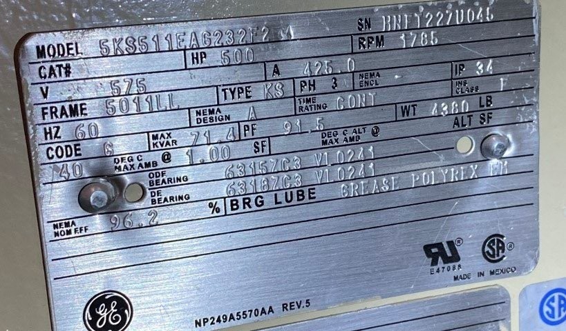 500 HP 1185 RPM General Electric, Frame 5011LL, DP, 2300 Volts (2 available)