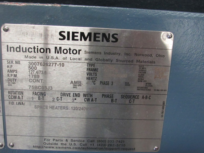 500 HP 1800 RPM Teco Westinghouse, Frame 5009/10/11C, TEFC R/B, 2300/4000 Volts, new