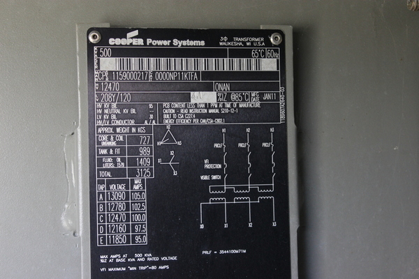 500 KVA 12470Y/7200 Primary, 120/208 Secondary, Bear Power Solutions Transformer