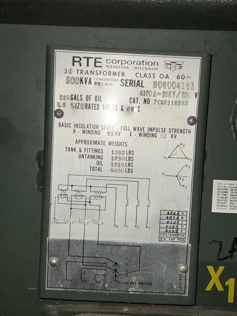 500 KVA 4160 Delta Primary, 208Y/120 Secondary, Pad mount (2 available)