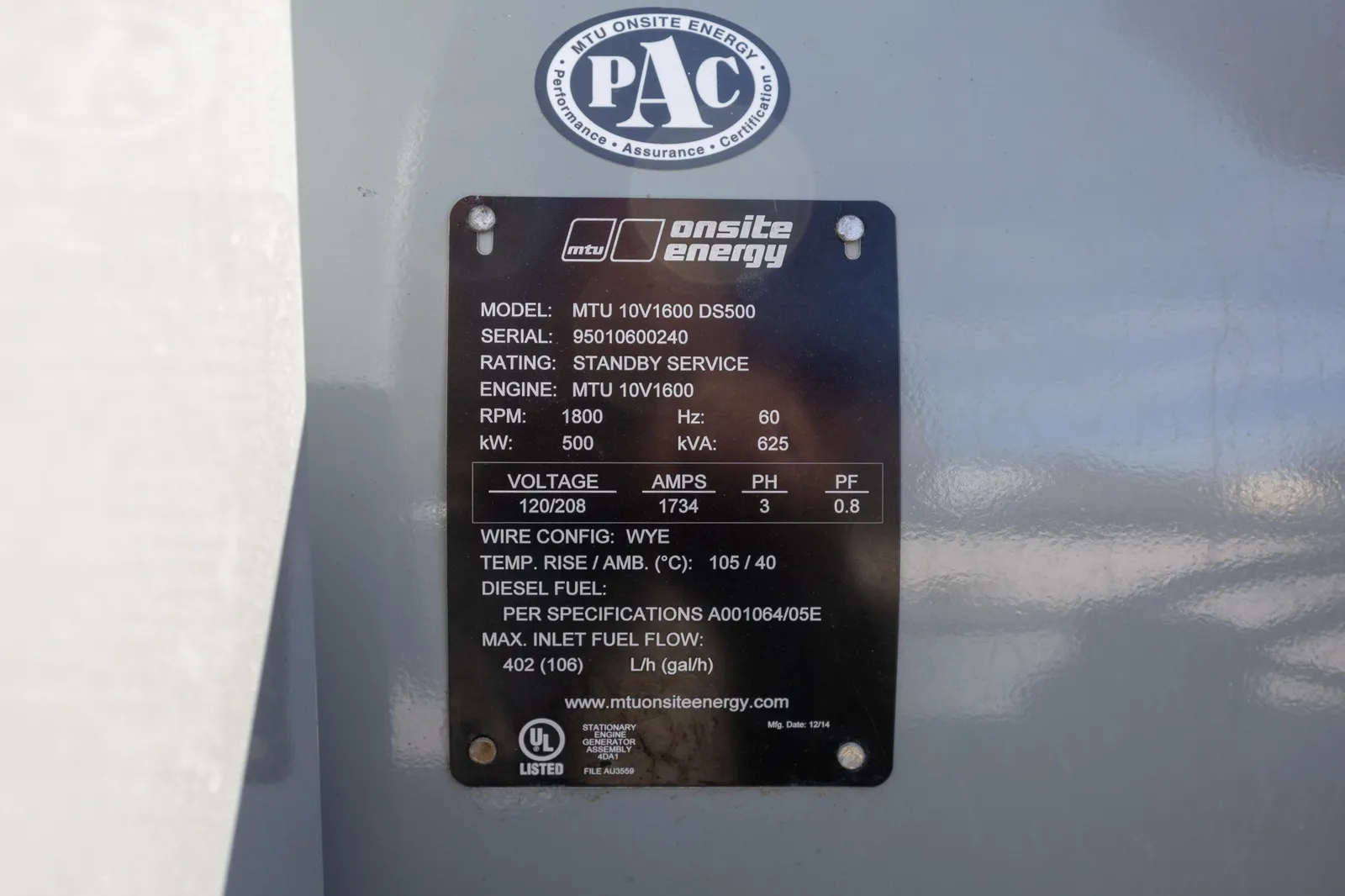Used MTU 500kW Diesel generator. This Standby power unit features a Open enclosure and has approximately 145 hours of use. It provides Three-Phase power at 120/208v and is ready to ship from our Jacksonville, Florida facility.