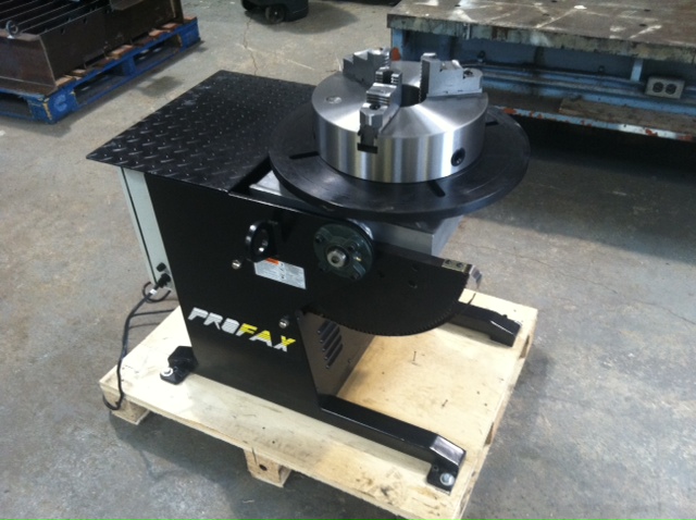New Profax 500lb Positioner with 22’’ Chuck, Positioner: New Profax 500 Pound Welding Positioner Model: WP-500 500 Pound Capacity 120 Volt Input Power Power Tilt 0.4 – 4 RPM Variable Rotation Speed Chuck: New Profax 22’’ Chuck Model WPG-22 Includes: Foot Pedal 1 Year Warranty on ...more