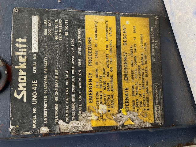 Inventory No. 0326-018-0001 Manufacturer Genie Model No. BOOM Z-30/20HD Name Boom Lift Arrival Date 03-25-2026 Dimensions L x W x H (inches) 204 x 76 x 80 Capacity 500 LBS Weight (lb.) 9460 Category Material Handling Condition Used Available Quantity 1 Item 31 Ft Lift Height, 62519 Hours, 45" X 27 1/2" Platform, W/key ...more