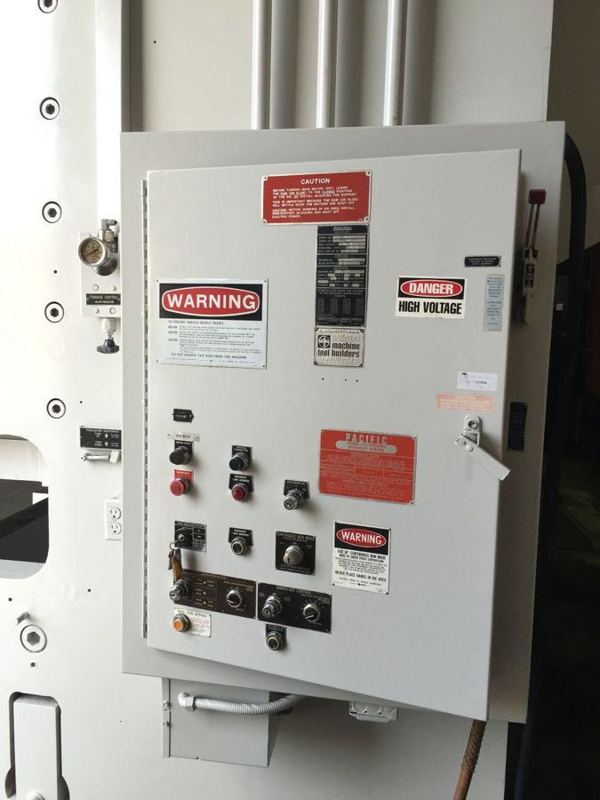 CLEARANCE L TO R BETWEEN THE SIDES IS APPROX 31" (28.5" BETWEEN THE GIB GUIDES). 16" DIAMETER RAM WITH APPROX 12" OF STROKE AND RATED AT 5000 PSI (300 TONS AT 3000 PSI). SLAB SIDES ARE MILLED AND DRILLED FOR TWO DIFFERENT DAYLIGHT OPENINGS: APPROX 17.25" AND 33.5". SIDES ARE APPROX 4.75" THICK WITH 3.5" SLOTS. TWO ...more