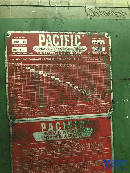 TONNAGE FORMING/PUNCHING 500/330 DISTANCE BETWEEN HOUSINGS 18-5 BED/RAM LENGTH 20 feet BELOW GRADE yes WEIGHT 140000 pounds BED HEIGHT 36 inches BED WIDTH 14 inches THROAT DEPTH 12 inches RAM STROKE (FULLY ADJUSTABLE) 10 inches OPEN HEIGHT (MAXIMUM HEIGHT) 20 inches CLOSED HEIGHT (MINIMUM HEIGHT) 10 inches HORSEPOWER ...more