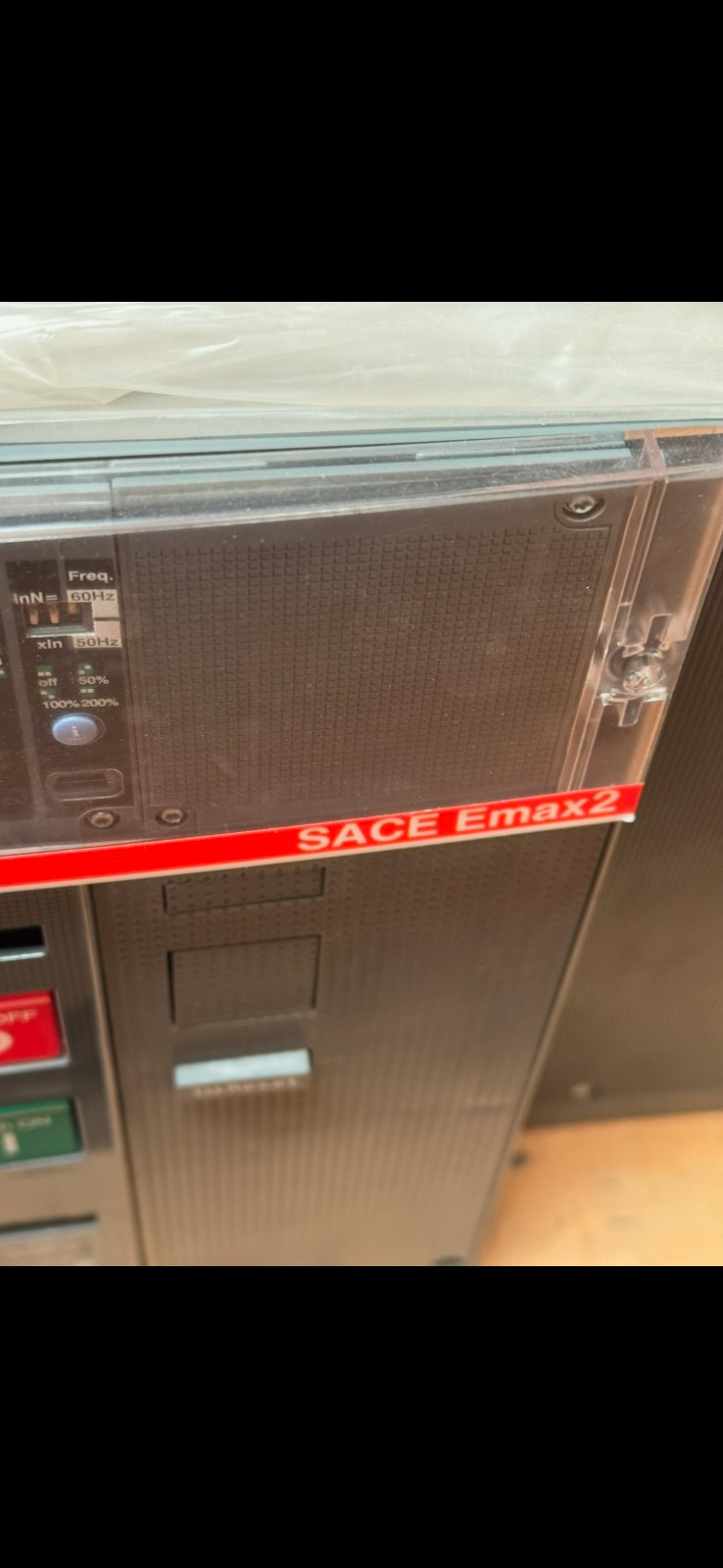 The product is the ABB SACE EMAX 2 E6.2 circuit breaker with a capacity of 5000 amps. This high-capacity circuit breaker is designed for industrial and commercial electrical applications, offering reliable protection and control for large electrical systems.