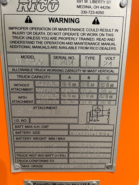 Battery Weight 1,250 Lbs