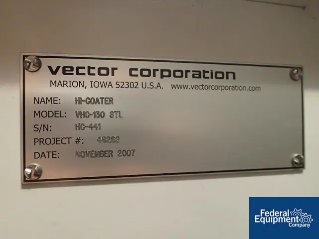 54" Vector Hi-Coater #HCF-130, Tablet Coater, 120-140 kg input & 140-160 kg output capacity, 4-16 RPM Drum, 3 HP, 460 V
