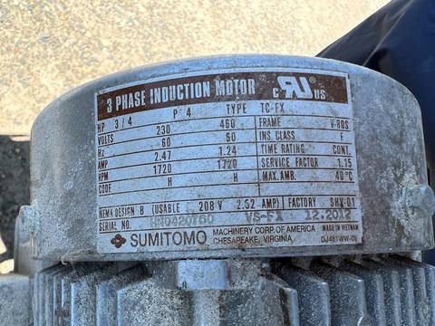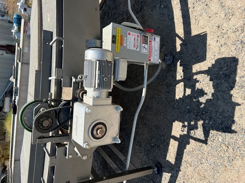 Used 58" Wide 18' Long Conveyor 18' Long Belt, 52" Wide Belt 110" Discharge Height 51" Infeed Height 1.5" Cleats, Approximately 40" Apart 13" High Walls 3 HP Baldor AC Motor, Cat. No. CEM3611T, S/N: F1708303704 Chain Driven Through A Gearbox 230-460/3/60, 8.4A/4.2A 1760 RPM 182TC Frame TEFC Enclosure Comes ...more