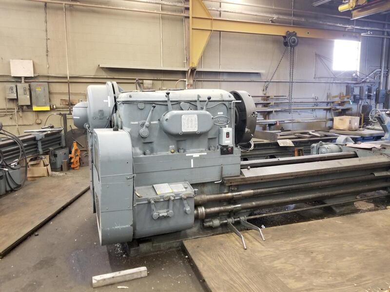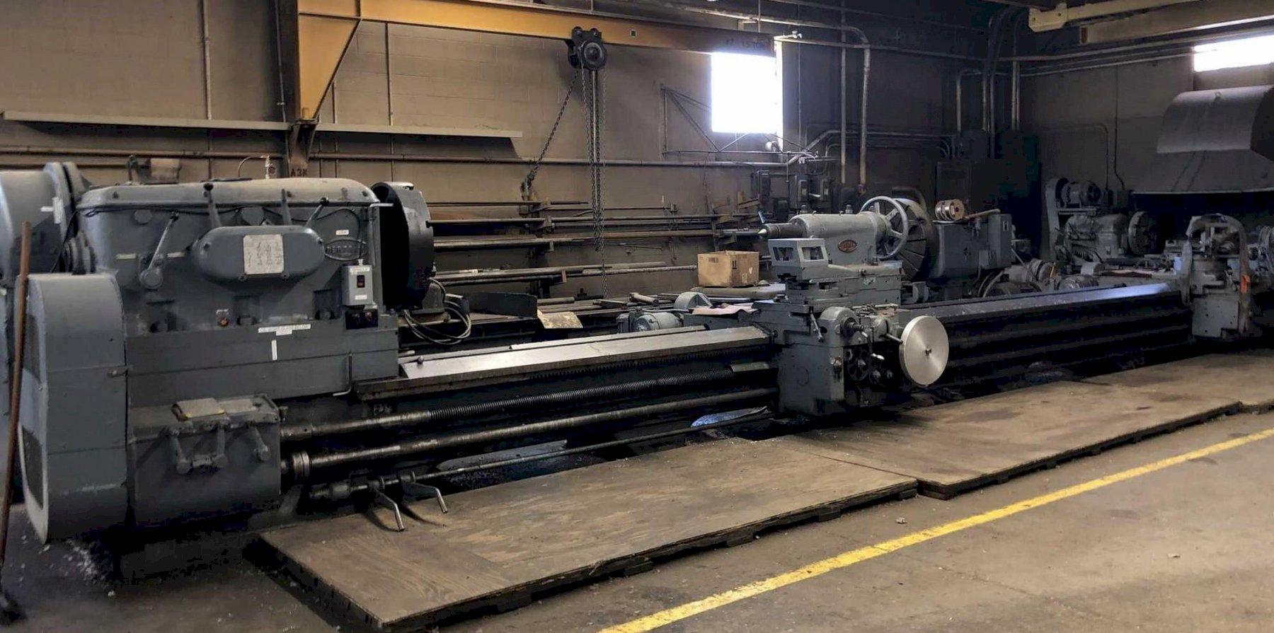 SERIAL.: 25260, MODEL.: 36NN, SWING OVER BED.: 54", SWING OVER CROSS SLIDE.: 36", DISTANCE BETWEEN CENTERS.: 228", SPINDLE SPEEDS.: 42-202, CHUCK DIAMETER.: 39" 4 JAW, THRU HOLE.: 2", TAPER ATTACHEMENT.: YES, STEADY REST.: YES, 16", 12", FOLLOW REST, FEEDS.: (48).006" -.378", MOTOR HP.: 25 HP, Machine Type.Lathes ...more