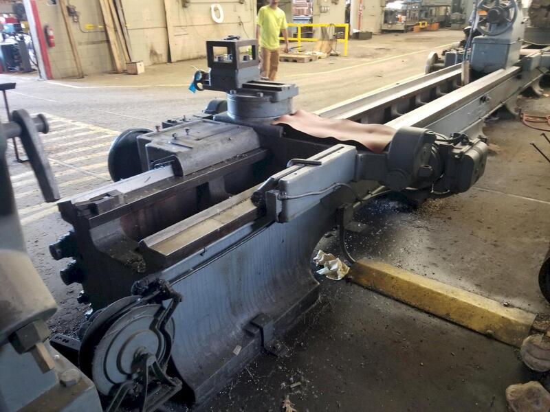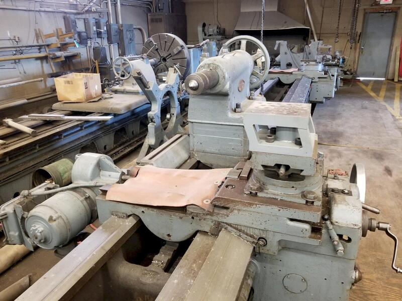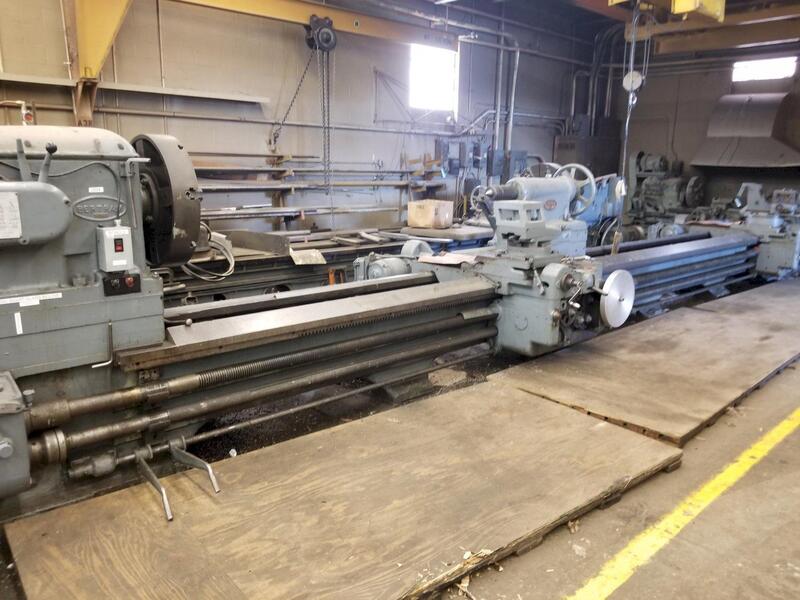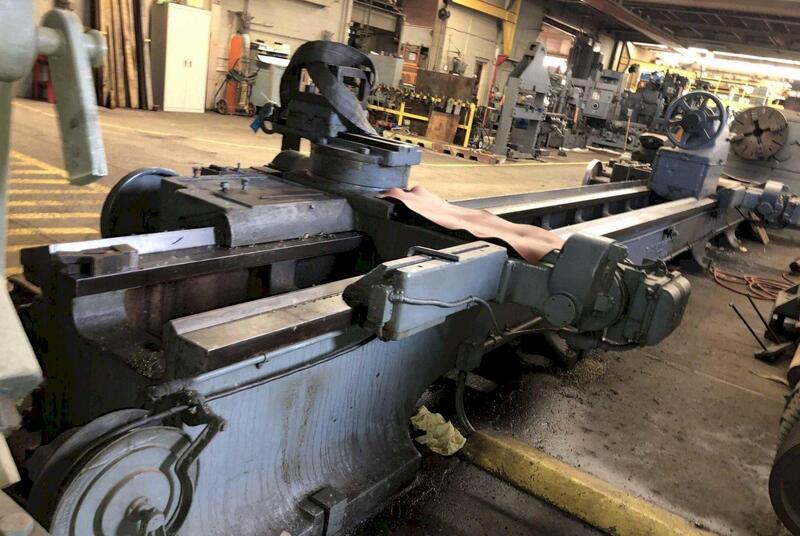 1-(used) Edelstaal 52" x 200" Heavy Duty Engine Lathe, New 1978., Swing over bed. 52", Swing over cross slide. 36", Swing in gap. 61.5", Distance between centers. 200", Spindle nose (Camlock). D-1-11, Hole in spindle. 4-1/8", Spindle speeds (23). 8 – 1,250 rpm, Feeds (44 each), Longitudinal. 0.0024 - 0.56 ipr ...more