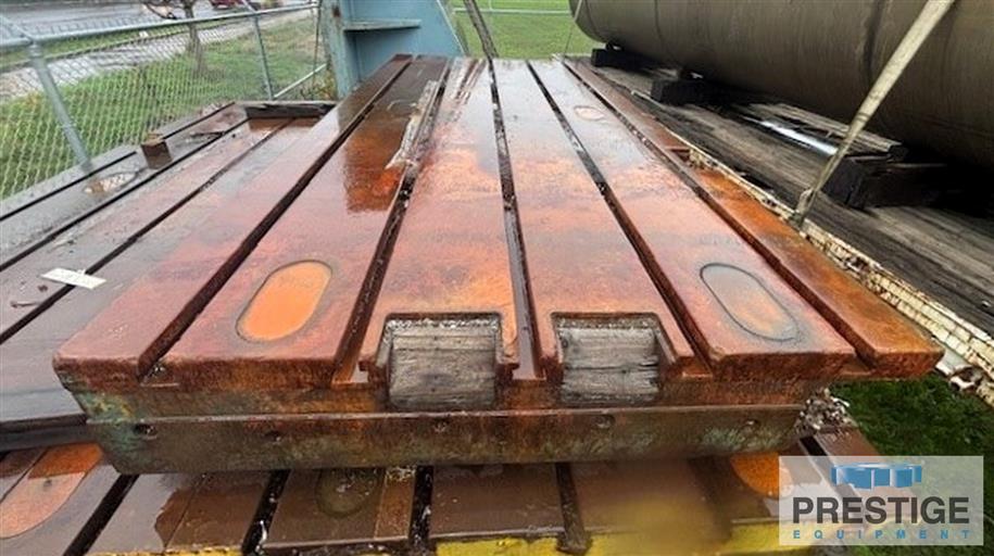 WIDTH.: 60", LENGTH.: 90", HEIGHT.: 14", # OF T SLOTS.: 2, 2 IDENTICAL PLATES, PLATE CONFIGURATION: 10' X 15', Machine Type.Tables, Floor & Layout Plates Manufacturer.N/A Model.N/A Year.N/A Condition.Used.