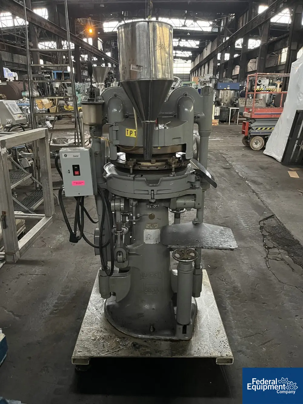 6.5 Ton, Manesty #BB3A, Tablet Press, 33 Station, 7/16" diameter, 11/16" fill D, 108000 TPH Manufacturer: Manesty Model: BB3A Ton: 6.50 Stock # 3921-1 Request a Quote 8 For Sale by Federal Equipment Company Surplus Record Dealer Since 1965 Contact Seller Cleveland, OH Sales or Contact Rep. 866-74...> Show Seller's Phone Number 866-740-5490 Let the seller know you found their listing on Surplus Record! View More Federal Equipment Company 's ListingsDescription Used Manesty rotary tablet press, model BB3A, 6.5 ton compression pressure, 33 station, 7/16" max tablet diameter, 11/16" max. depth of fill, dual sided with feed frames and feed hoppers, rated to 108,000 tablets/hour, serial# 37A157. Request More Information from SellerGet Your Price from Federal Equipment Company! "*" indicates required fieldsName*Company*Email* PhoneZip / Postal Code*QuestionMake an OfferRequests Send me a shipping quote I am interested in financingSend Copy Email me a confirmation of this inquiryBuyer Protection Use our partner Escrow.com to buy or sell equipment safelyBuyer Protection Send me info about buyer protectionThis field is hidden when viewing the formDealer Email Buyers Who Viewed This Listing Also Viewed … 6.5 Ton, Manesty Nova Diamond Multimax #REB-PLC, Tablet Press, 17.46 mm D, 16mm diameter, 306000 TPH, B tooling, multiple station, refurbished, 2017Category: Tablet Press MachineSeller: Federal Equipment CompanyLocation: Cleveland, OH Mfr: Diamond MultimaxModel: REB-PLCYear: 2017Used Manesty rotary tablet press, type Diamond Novapress, 51 station, 16 mm max tablet diameter, 17.46 max depth fo fill, keyed upper punch guides, 6.5 ton compression pressure, 1 ton pre compression, single sided with force feeder, rated up 306,000 tablets/hour, refurbished by IPR, in 2017, serial# NOV46JB. 6.5 Ton, Manesty, Tablet Press, 33 Stations, 7/16" tablet diameter, 11/16" Depth of Fill, 180000 Tablets/hr.Category: Tablet Press MachineSeller: HGR24Location: Euclid, OH Mfr: ManestyInventory No. 0122-023-0003 Manufacturer Manesty Name Manesty Bb3a Tablet Press 33 Stations Arrival Date 03-23-2022 Dimensions L x W x H (inches) Unavailable Capacity 33 STATIONS Weight (lb.) 1 Category Fabrication Condition Used, tested Available Quantity 1 Serial No. 37A157 Item Manesty Rotary Tablet Press, Model ...more 6.5 Ton, Manesty #Novapress, " D" Tooling Table Press, 37-Station, 3700 tablets/min., 6.5 Ton final compression, 1" max tablet diameter, 13/16" max depth of fill, 480 VCategory: Tablet Press MachineSeller: Aaron Equipment CoLocation: Schaumburg, IL Mfr: ManestyModel: NOVAPRESSused- manesty novapress 37 station "d" tooling tablet press. capable of outputs up to 3700 tablets per minute. has precompression (1 ton) and final compression force up to 6.5 ton. has powered force feeders. maximum tablet diameter 25.4mm (1") and maximum depth of fill: 20.6mm (13/16"). last used in otc tablet ...more 6.5 Ton, Manesty / Bosch #BB3B, automatic, 33-station, rotary tablet press rated up to 1884 tablets per minuteCategory: Tablet Press MachineSeller: Frain IndustriesLocation: Carol Stream, IL Mfr: Manesty / Bosch PharmaModel: BB3BManesty Model BB3B, automatic, 33-station, rotary tablet press rated up to 1884 tablets per minute – depending on size, shape, depth and product being run. Tablets: up to 7/16" diameter x 11/16" deep. 6.5 tons of pressure, dust extraction nozzles, 2 adjustable stainless steelproduct hoppers ...more 6.5 Ton, Manesty, Tablet Press, 16 Stations, 5/8" tablet diameter, 11/16" Depth of Fill, 90000 Tablets/hr.Category: Tablet Press MachineSeller: HGR24Location: Euclid, OH Mfr: ManestyInventory No. 0122-023-0004 Manufacturer Manesty Name Manesty 16 Station Betapress Tablet Press Arrival Date 03-23-2022 Dimensions L x W x H (inches) Unavailable Capacity 16 STATIONS Weight (lb.) 1 Category Fabrication Condition Used, tested Available Quantity 1 Serial No. 18U179 Item Manesty Beta Rotary Tablet Press ...moreShare × "*" indicates required fieldsYour Name*Your Email* Recipient's Email* Note to Recipient