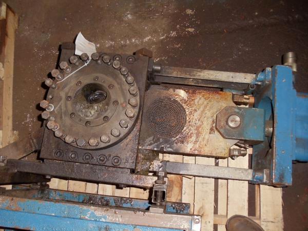 Used 6" Ermafa hydraulic slide plate screen changer. Has dual breaker plate with 7.5 hydraulic power pack on stand.
