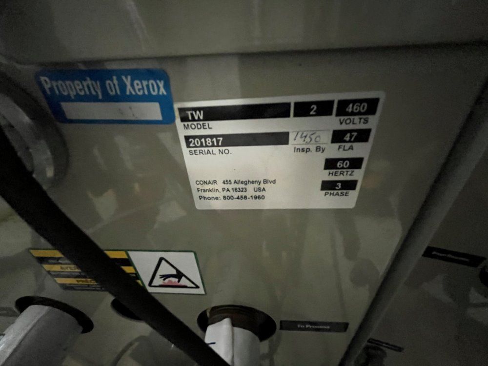 Inventory No. 0822-008-0064 Name 6 Kw Conair Thermolator, Model Tw2 Arrival Date 08-23-2022 Dimensions L x W x H (inches) Unavailable Weight (lb.) 1 Category Chemical Processing Condition Used, tested Available Quantity 1 Item Used 6 Kw Conair Thermolator, Model Tw2, 460 Volt, Single Zone With Tw-2 Microprocessor ...more