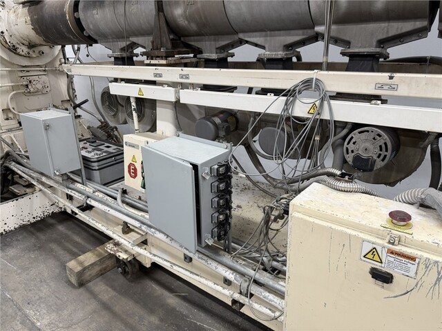 Item 6267 - One (1) Used Krupp 6.0" 150mm CFPBE Pin Barrel Rubber Extruder, 14:1 L/D, Reliance 250 HP 1785 RPM 460 VAC motor, 41.46:1 gearbox ratio, variable straight delivery head, pneumatic head clamp assembly, forced lube system, PFR power feed roll external bearings and adjustable scraper blade, date 2006.