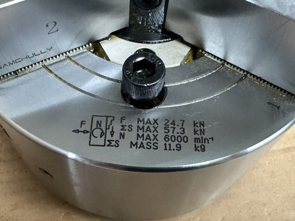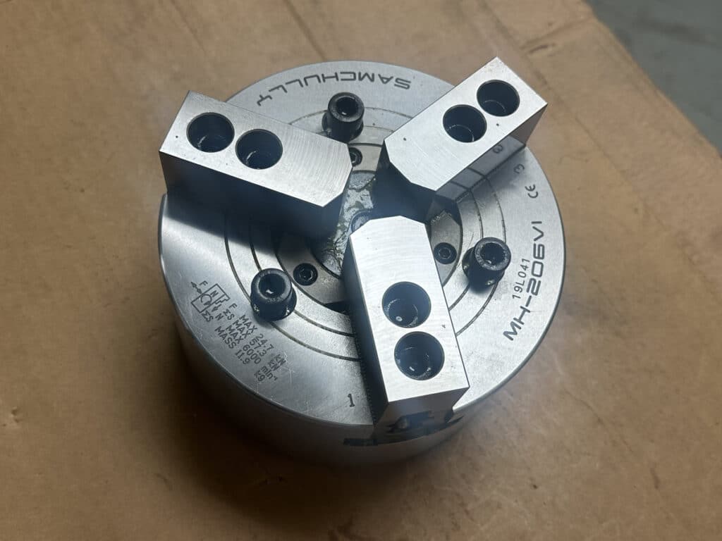 Spec Sheet:, 6in Precision Chuck 3 Jaws, New in Box, Precision Chuck, Lathe Chuck, 3 Jaws, Set of 3, Overall Diameter: 6, Center Hole: 1-1/2, 5 ID on backside, Other Notes: Comes with chuck key.