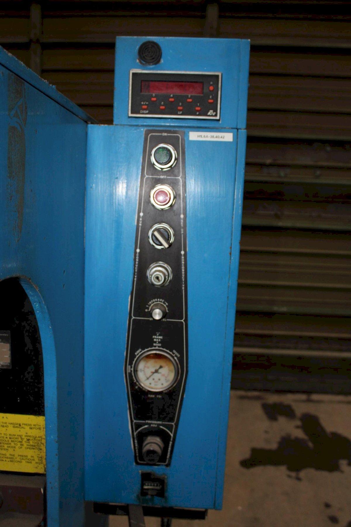 HAEGER HP6-C Insertion Press #8173 #1, Capacity: 6 Tons, Throat Depth: 18", Stroke Length (Adjustable): 0-8 1/2", Vertical Up Stroke (Adjustable): 3/8" - 8 1/2", Oil Tank Resevoir: 18 Gallons, Machine Dimensions: 36" x 30" x 67", Approx. Weight: 1560 LBS.